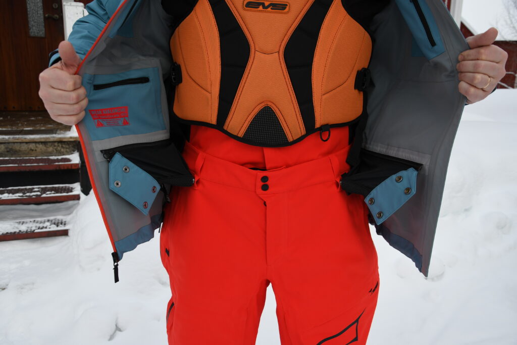 Men oavsett matchade jacka och byxa varandra på ett mycket tilltalande sätt. Det går att koppla ihop jacka och byxor med hjälp av tryckknappar. En bra funktion under de djupaste dagarna, men jag tycker personligen att detta förtar en del av tanken med ett tvådelat ställ. Jag gillar som sagt jacka och byxa som inte sitter ihop. Tycker det känns friare så. Men det är ju så klart en högst personlig åsikt. Smaken är som detta skoterställ. Tvådelad…